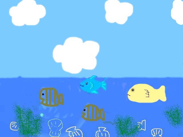 魚とくじらを書きました。黄色いくじらが本当にいてほしいなぁ。