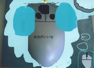 ・マウスの思いを表現したのですね。「自由がいいな」という言葉がぐっときます。いつもパソコンにつながれているから、そう思うのですね。手描きで上手に仕上げています。