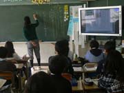 | トップ記事を決定します。電子黒板付きデジタルテレビには,選んだ写真と選ばなかった写真を映し,プロジェクタには記事を映し出し,それぞれが説明を行います。アップとルーズの効果の違い,キャプションや見出しのつけ方,写真と文章の組み合わせ方などの工夫がその評価の対象となります。 |